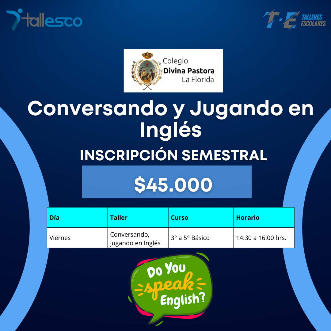 El Taller Conversando y Jugando en Inglés del Colegio Divina Pastora La Florida invita a las y los estudiantes a aprender el idioma de una manera entretenida, cercana y sin presión, donde hablar, jugar y equivocarse forma parte natural del proceso de aprendizaje 🎲🗣️.